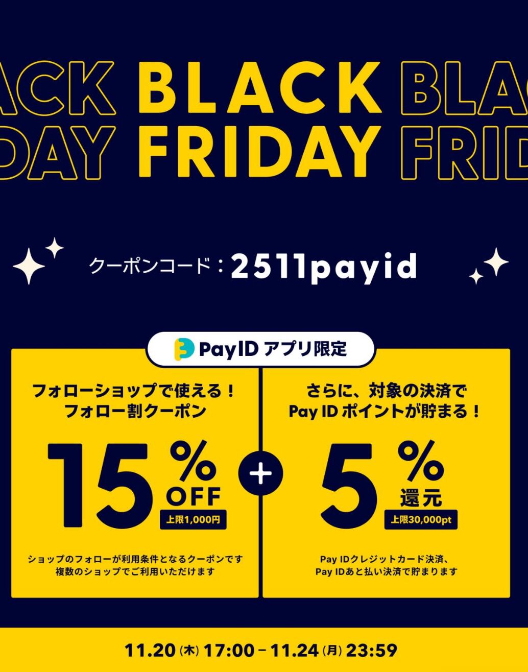 【Pay IDアプリ限定】15%OFFフォロー割クーポン(上限1,000円)